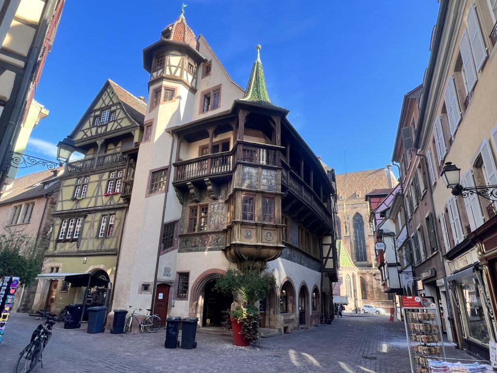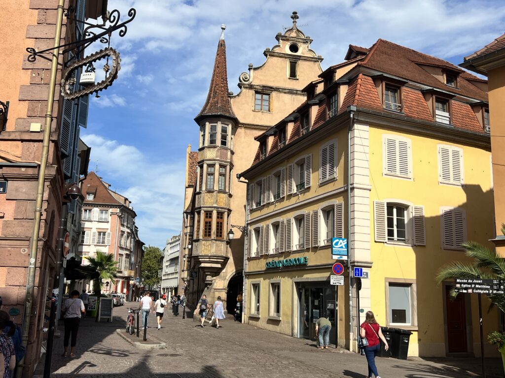 Von Straßburg gings über die A35 nach Colmar. Auch dort war der erste Camperplatz komplett ausgebucht, reservierten aber dann für den zweiten Tag. So standen wir eine Nacht stadtnahe auf einem Stellplatz mit kurzem Weg in die Innenstadt. Colmar, fast wie eine verwunschene Stadt. In der Innenstadt ist viel von der mittelalterlichen Bausubstanz liebevolle erhalten worden. Auch hier wird das Innenstadtbild stark von zwei großen Kirchen geprägt; St. Mathieu, früher einmal katholisch, dann evangelisch und unter Ludwig XIV. dann durch eine Erweiterung in einen evangelischen und einen katholischen Teil gemischt genutzt und anderseits St. Martin, eine katholische Kirche von den Bettelmönchen der Dominikaner von 1235 – 1365 erbaut, gilt als Hauptwerk gotischer Baukunst im Elsass. Mit ihren gewaltigen Kirchenschiffen überragen sie die Innenstadt und prägen so das Stadtbild.